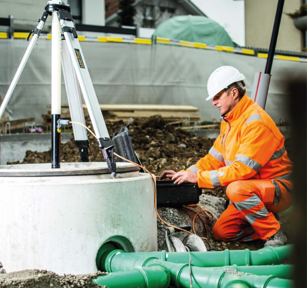 - Haltungs- und Abschnittsprüfungen von Kanälen und Leitungen bis Rohrdurchmesser 1’000 mm mit Luftdruck oder Wasser